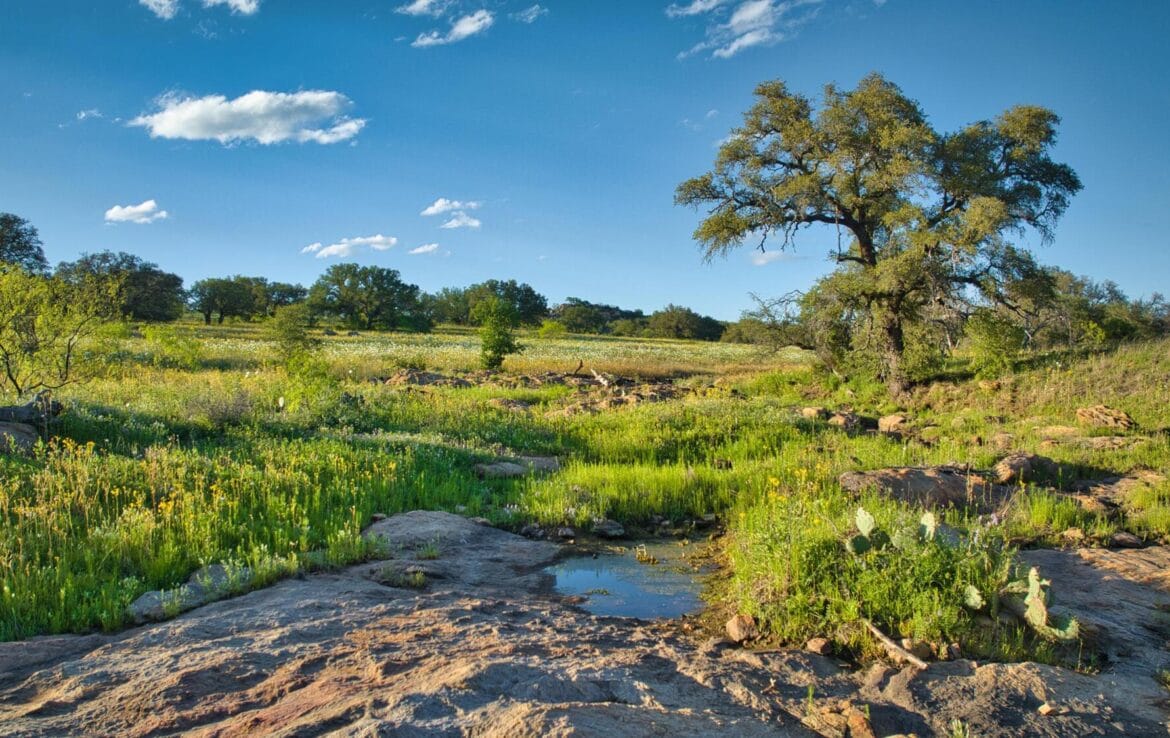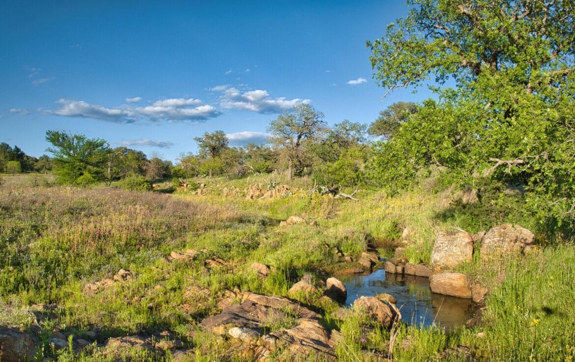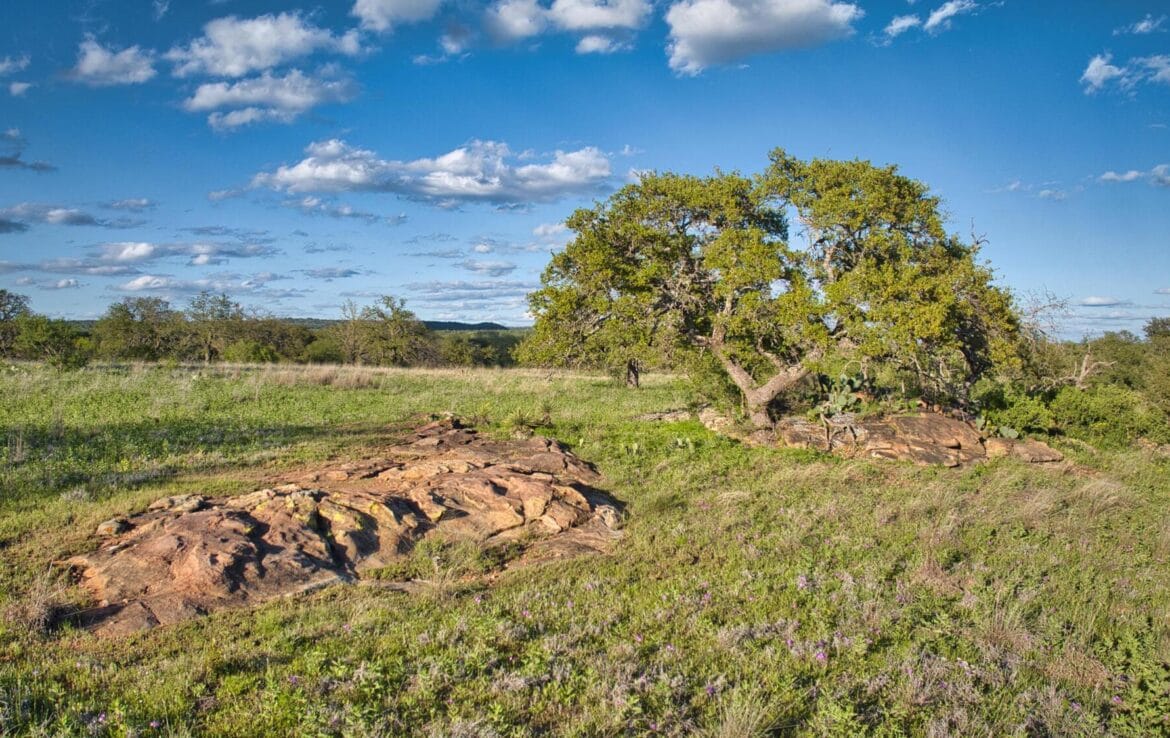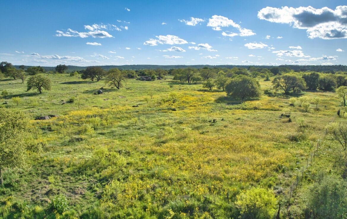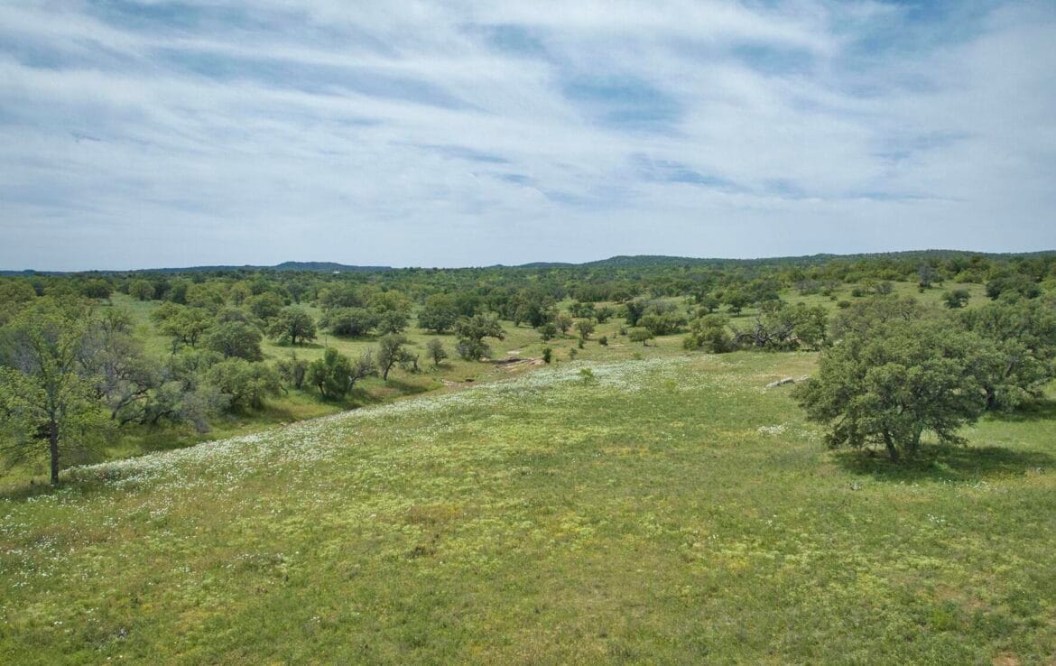 Spectacular hilltop views with a park like landscape will capture your attention as you meander through this ranch. Granite outcrops and boulders add to the scenic topography while north fork of San Fernando Creek also traverses the ranch bringing seasonal live water. Scattered live oak, post oaks and Spanish oak trees throughout, mesquite and native brush cover. Perimeter fenced and cross-fenced into two pastures. Recently drilled 12 GPM water well (not equipped) with electric power on property. Small metal shed with concrete floor and electric for storage of equipment or all-terrain vehicles. County road frontage with recorded, short easement road access to currently used gate along Fly Gap County Road. Come take a look- you will not be disappointed! Priced at $6,900 per acre.