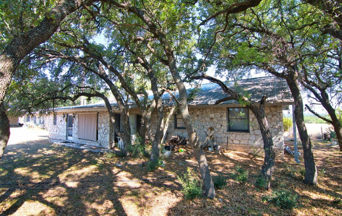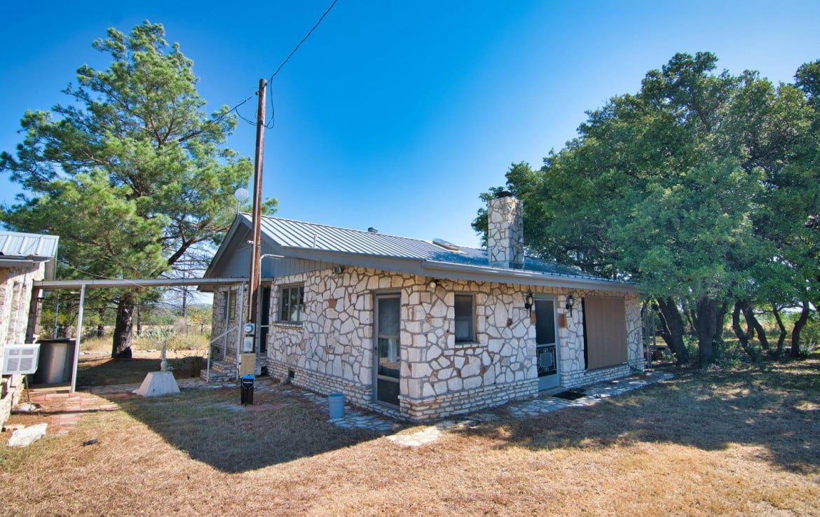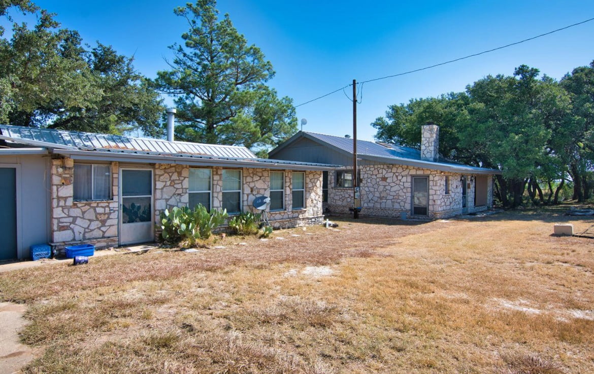 The 2,204 square foot main house is a 3/2 with large living room and kitchen offering plenty of storage and seating space. Each bathroom has it’s own walk in closet and there are multiple storage closets located throughout the house. The fireplace in the front room is constructed of native rock that was hauled from the bluffs on the backside of the property. The second house is a one bedroom, one bathroom with small kitchenette that would make a nice guesthouse or mother-in-law suite with some updating.