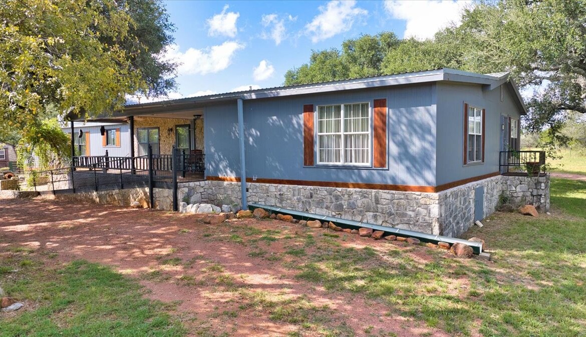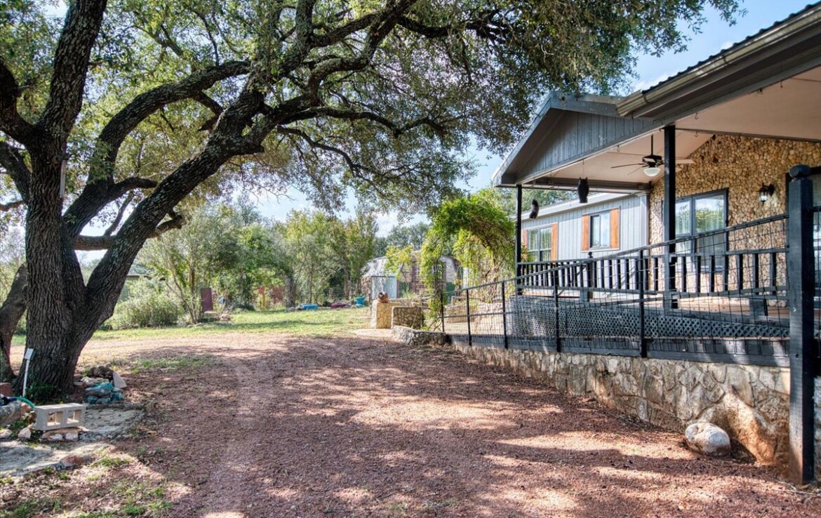 Ten acres densely wooded in live oak, cedar elm, persimmon and other native brush that offers privacy, observation of wildlife and country living. Auto gate entrance leads to well maintained 3/2 Palm Harbor home with integrated, self sufficient and private entry, 900 sq.ft. 1/1 apartment. Fireplace in living room. All electric. Two separate CA/CH systems. Metal roof, smart board exterior siding with windows accented with cedar stain trim, stone skirting. Shaded front porch. Attached two car carport. Numerous storage and weather protective sheds. RV hook-up. Garden and mediation space with water fall. Concrete storm shelter. Cross-fenced for livestock management. Ag valuation keeps taxes low. Less than 5 minute drive to Mason. SOLD
