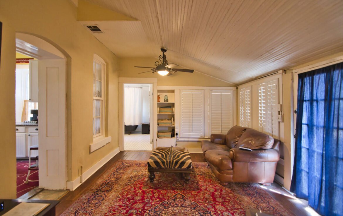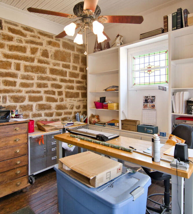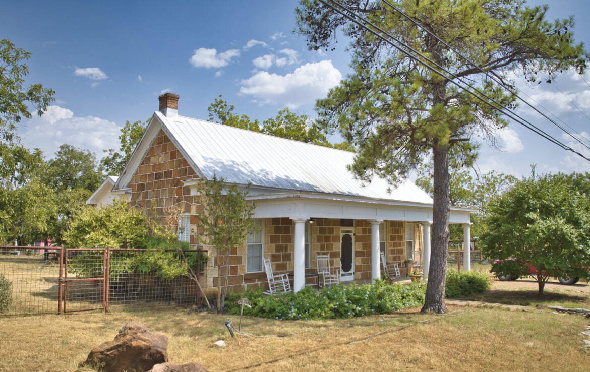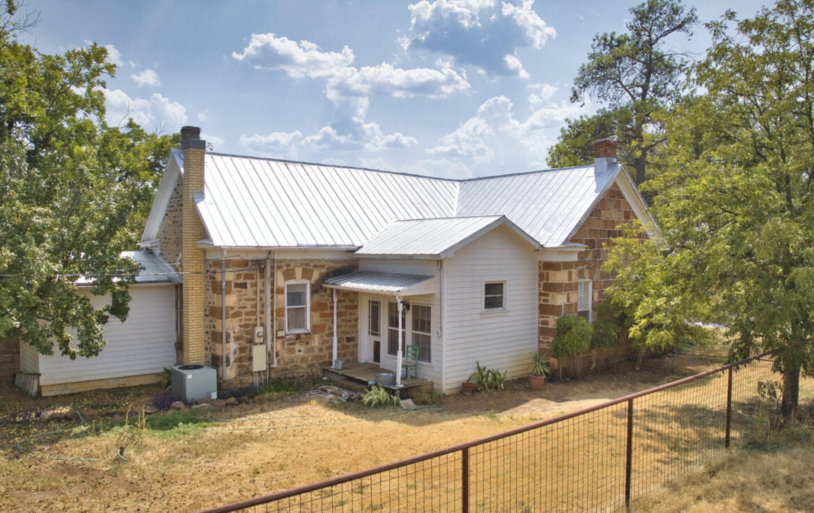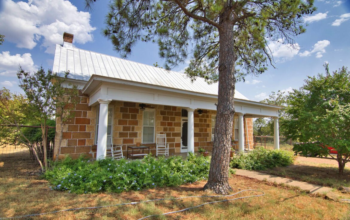 One of a kind! 2/1 historic rock home on huge 0.656-acre lot. Unique and ornate stonework around most of the exterior. High bead board ceilings, all wood floors and 1,970 sq ft of living area. 2 bedrooms, 1 Bath with kitchen, dining, den and workroom. Fireplaces in each bedroom. Gorgeous entry foyer from covered front porch. Original food/wine cellar underneath house and accessed from the interior. Exterior walls are 24″ in thick, interior 21″ in thick. Believed to have been built in 1896 by German immigrant Stucke family from Hanover. Later sold to Heinrich family in 1920. High steel panel perimeter fence. Windmill, well & cistern tank house. Within walking distance to Mason’s downtown square.