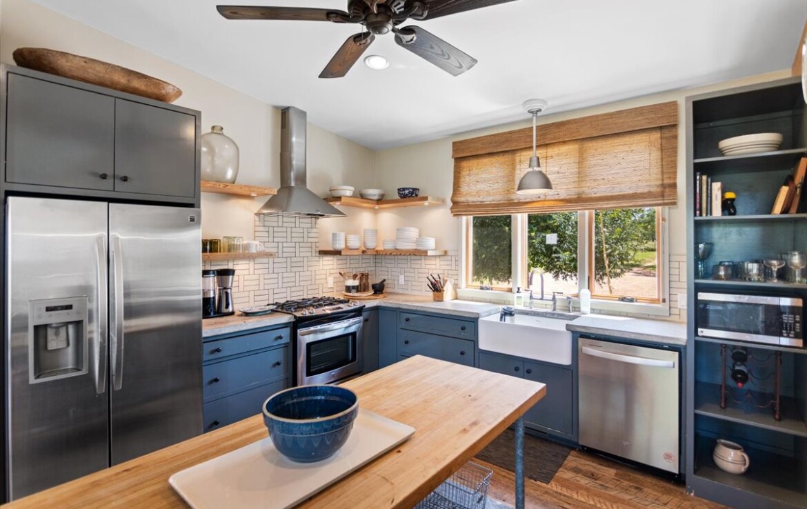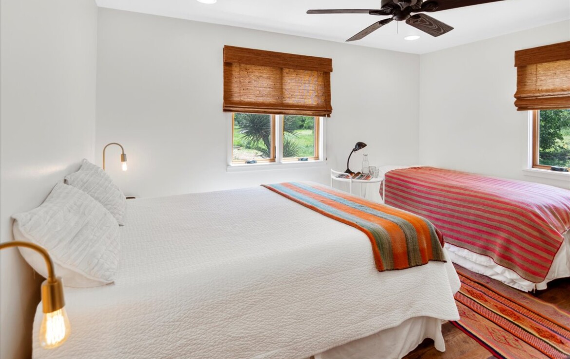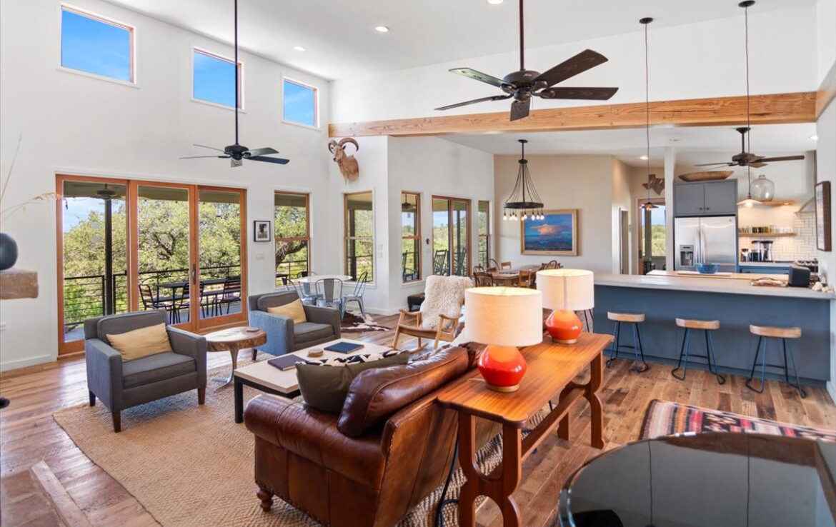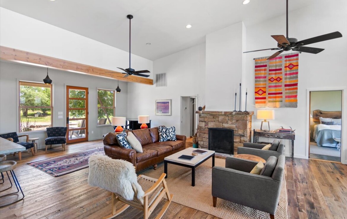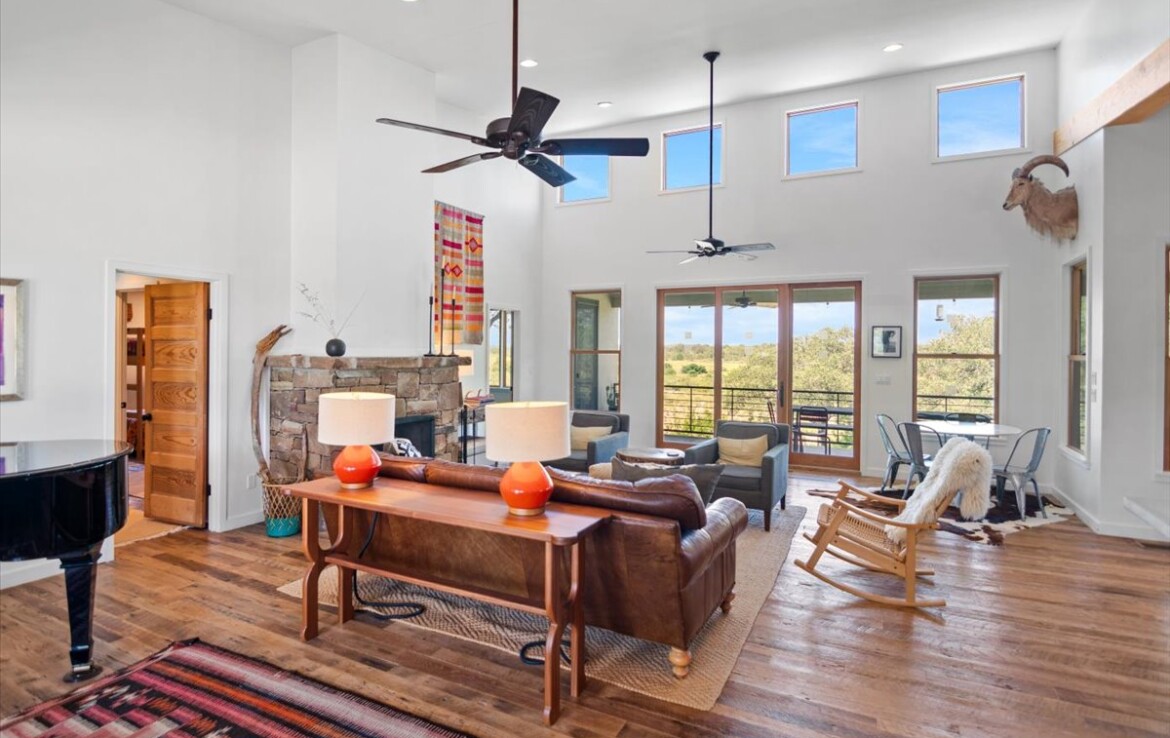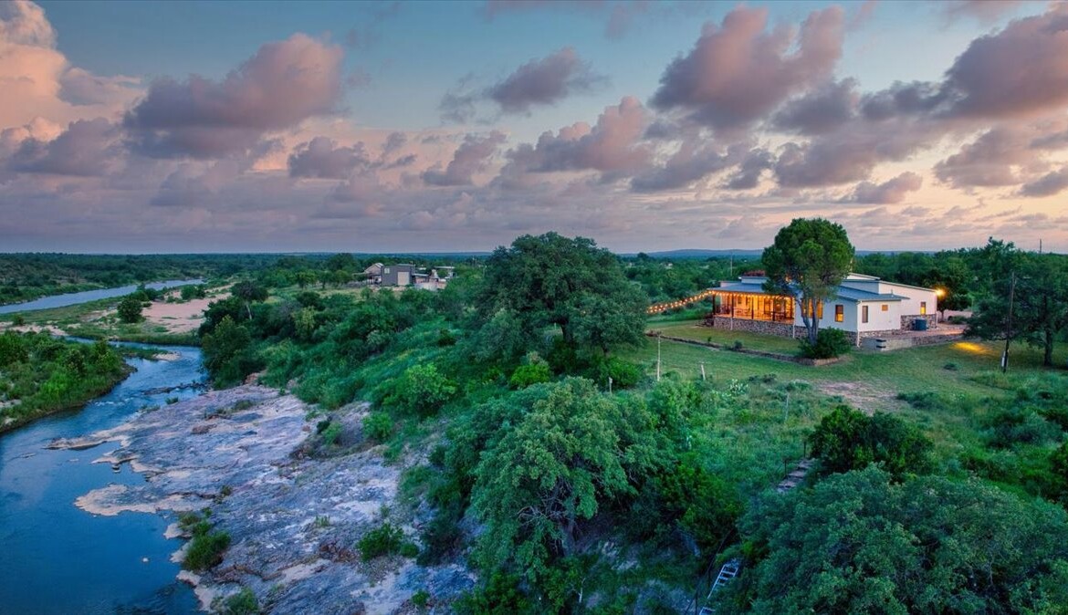 Tucked away on 10.65 pristine acres along the clear, spring-fed Llano River, this rare retreat blends rustic soul with refined living. The approximately 2,654 sq. ft. home—meticulously rebuilt in 2011 by acclaimed Fredericksburg builder Chris Kaiser—offers 3 spacious bedrooms and 3 full baths, harmonizing craftsmanship with comfort at every turn.