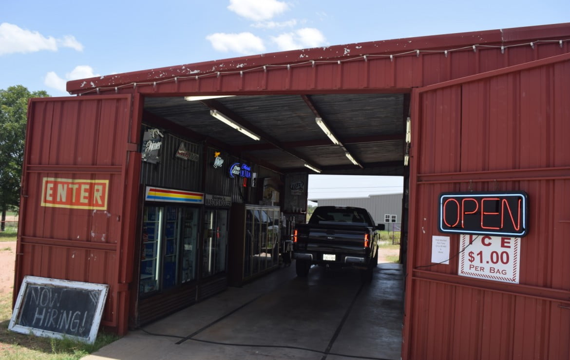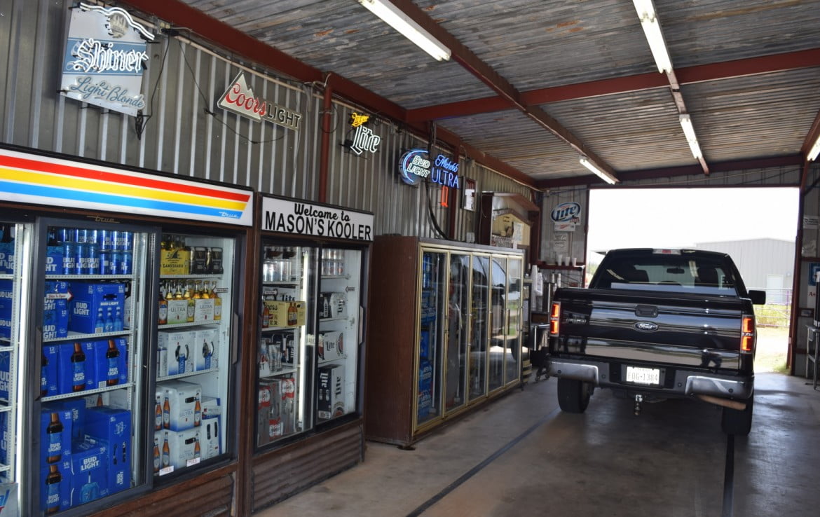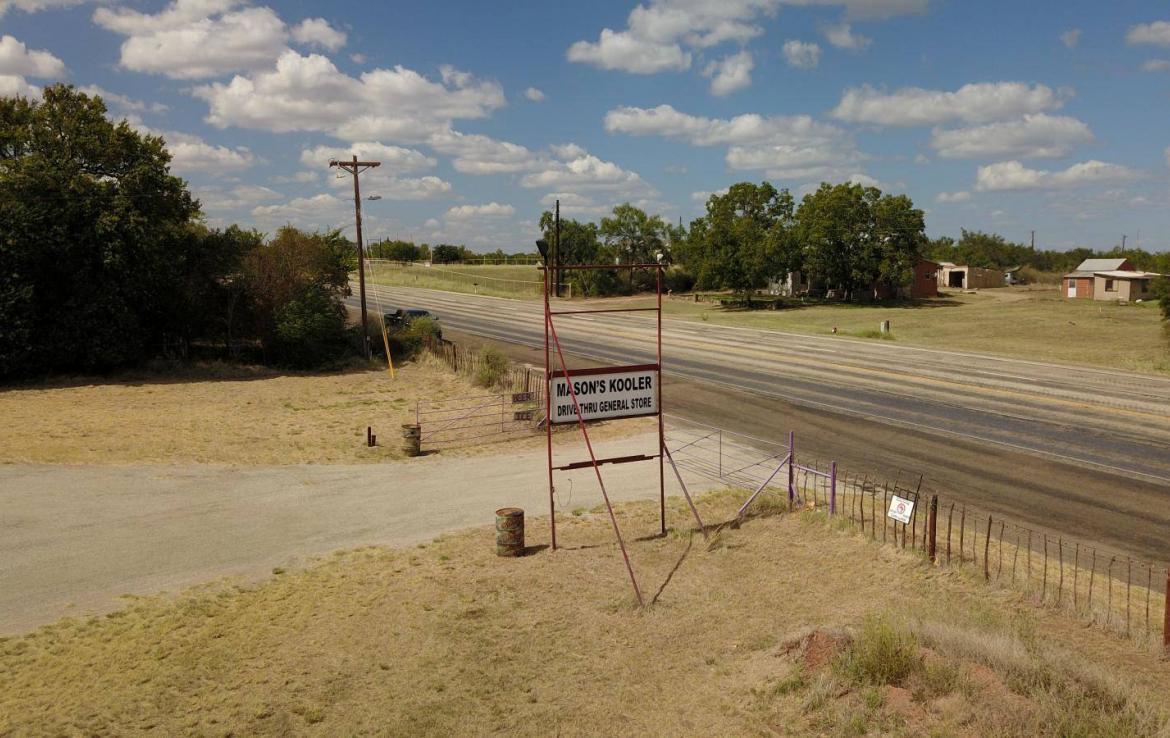 Excellent commercial location on US Highway 87 S frontage towards Fredericksburg, Ft. Mason City Park, Comanche Creek Golf Course and the Llano River. Mason’s only drive-thru cooler barn, there’s great potential and setup here for liquor store expansion being already located in an approved zone. Spacious 3/4 acre lot with additional city street access (Rainey) on the south side. Metal building has approx. 2,200 sq ft. of warehouse space, split level with loading dock, drive through vehicle lane, workshop, walk-in freezer, 2 office spaces with A/C and private restroom. Zoned C-2.