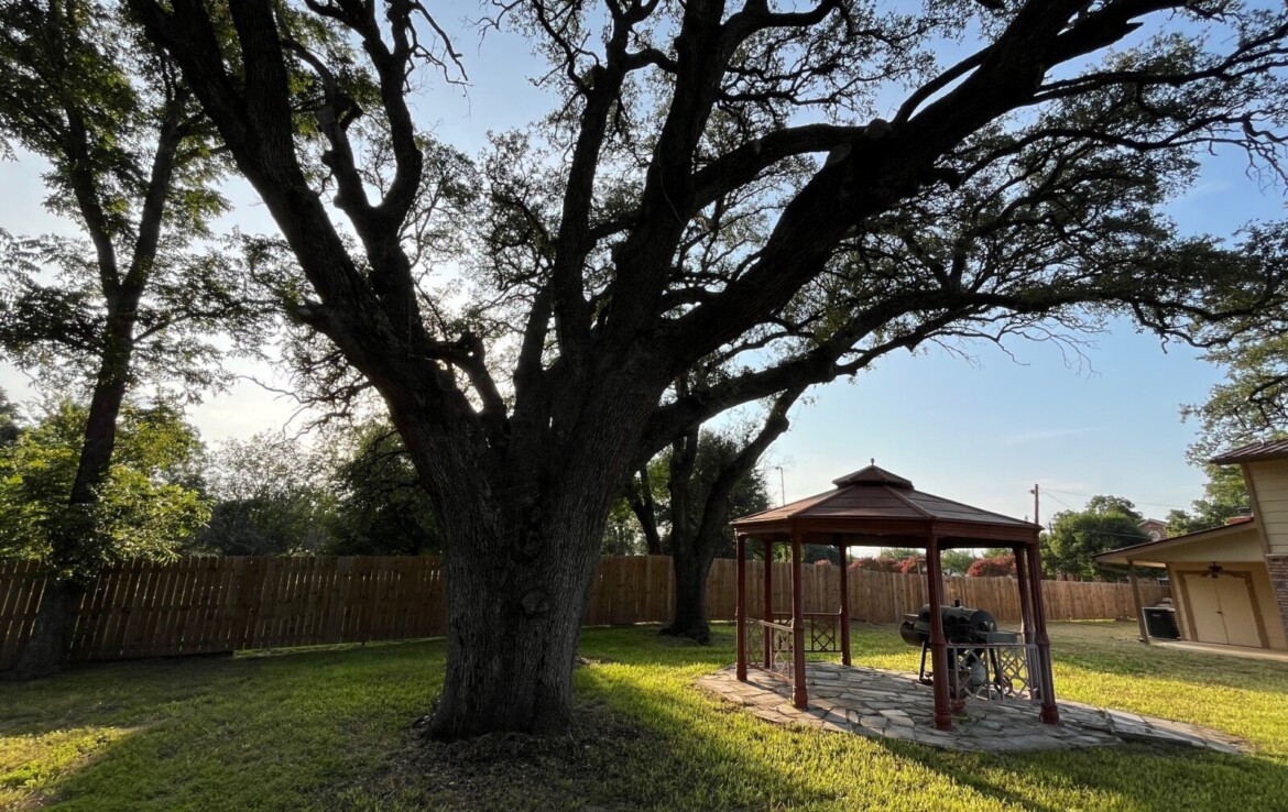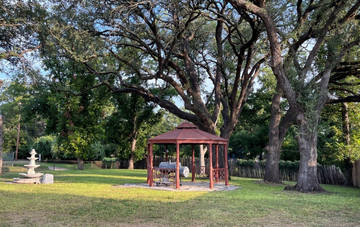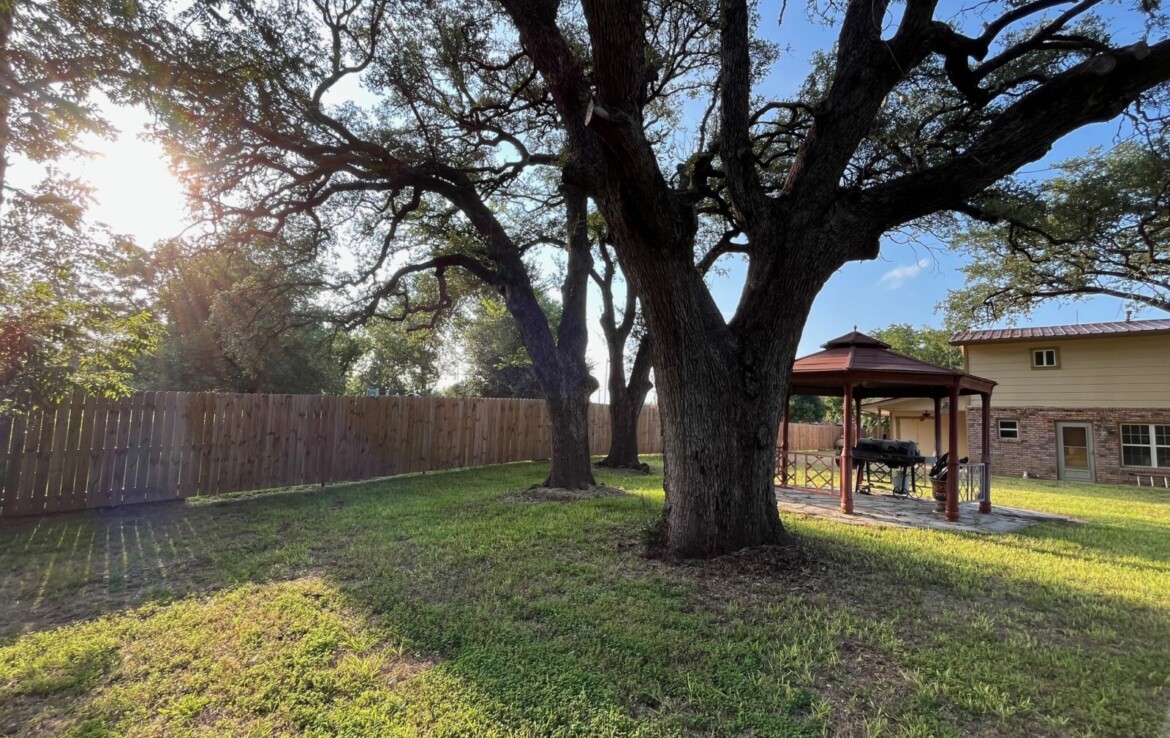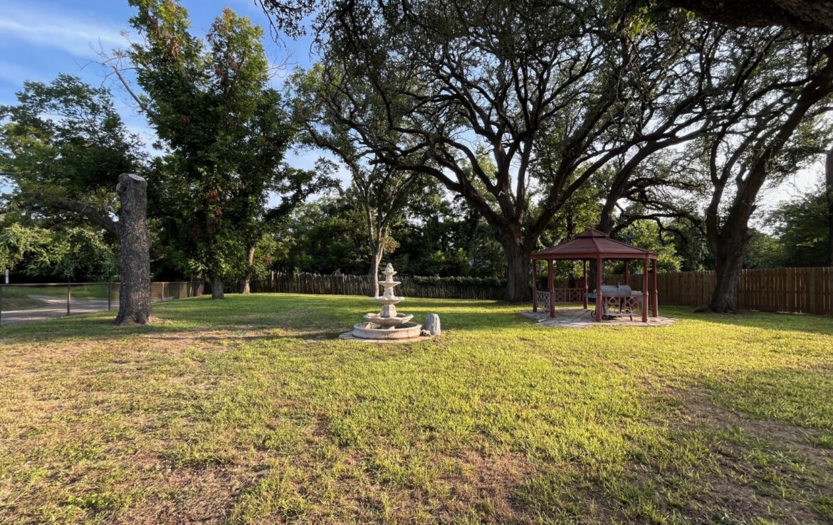 Huge, shaded yard and trees with metal and privacy fencing that can gate-open out into a church park in the back. Powered Gazebo and water fountain offer a tranquil setting for outdoor sitting, cooking and entertainment. Property extends to the middle of Gamel Creek just outside of south fencing.