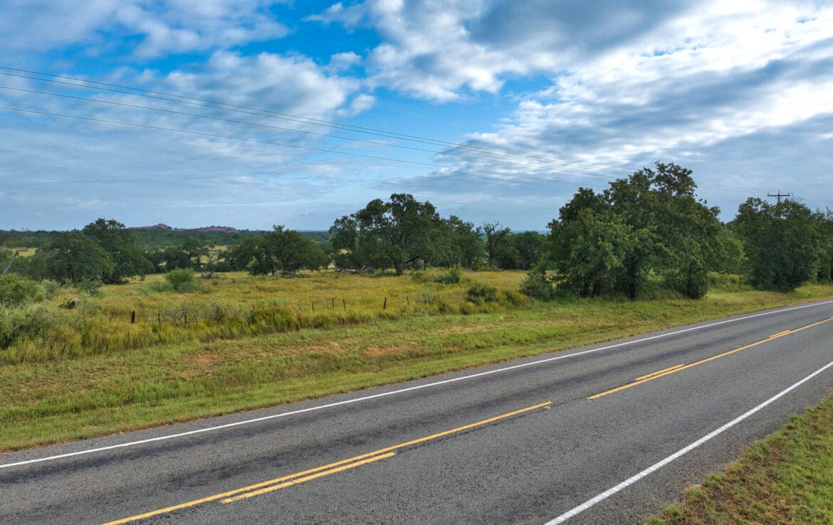Property also offers a rare combination of features and attributes including 1915′ feet of paved road frontage (State RR 386), CTEC electric service, strong well water capacity, big oak hardwoods and deep sandy loam soils. Would make for a great build site with hillside views looking west towards Spy Rock (sacred granite dome formation). Perimeter fenced. No deed restrictions and low Ag exempt property tax. Located in the award winning Mason School District. Short drive into Gem of the Hill Country Mason, TX or up to the feed store and café in Fredonia within minutes. More info available at: